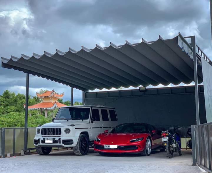 Bảo vệ xe máy, ô tô trước thời tiết khắc nghiệt; có thể dùng mái xếp, mái Poly hoặc mái tôn tùy nhu cầu. -