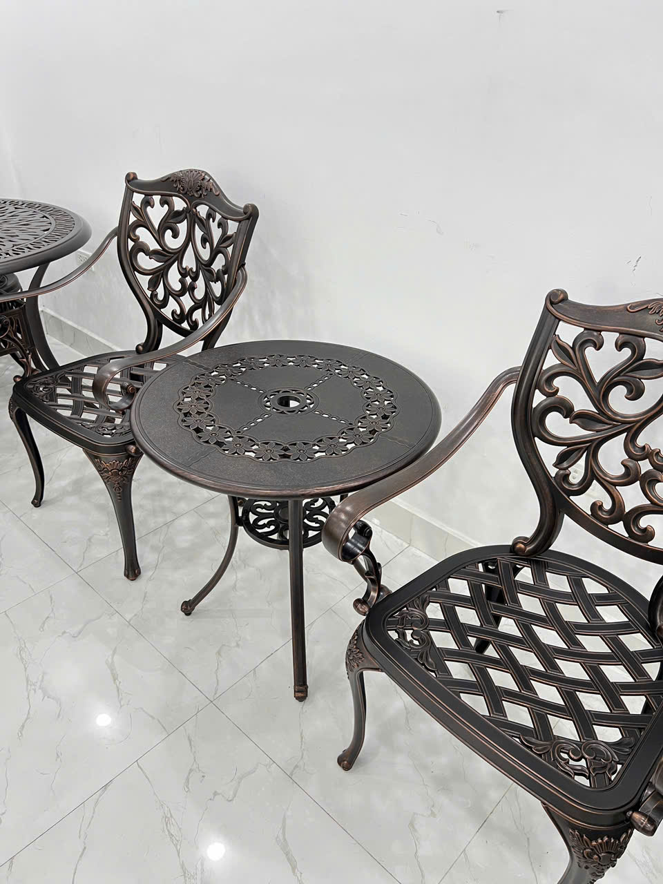 Bàn Ghế Nhôm Đúc Ngoài Trời D65 – GLCT nổi bật với thiết kế tinh xảo, những đường nét uốn lượn và hoa văn nghệ thuật, mang lại cảm giác thanh lịch và đẳng cấp. Mẫu sản phẩm này dễ dàng kết hợp với nhiều phong cách nội thất khác nhau, từ cổ điển đến hiện đại, giúp nâng tầm không gian sống của bạn.