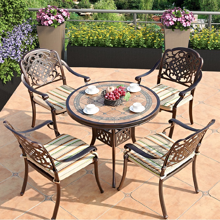 Bạn có thể đặt bộ bàn ghế nhôm đúc nghệ thuật làm bàn ăn/bàn trà tại khu vực sân vườn/ban công mà không phải lo sợ thời tiết bào mòn.