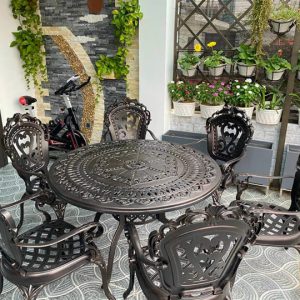 Bộ bàn ghế sân vườn ngoài trời TCĐ-D100 là mẫu mới nhất của năm 2022, với thiết kế kiểu dáng sang trọng lịch sự dành cho những khách hàng có gu thẩm mỹ tinh tế, mang hơi hướng tân cổ điển, giống như thiết kế từ các nước phương tây có phong cách lãng mạng nên bộ bàn ghế sân vườn nhôm đúc này rất phù hợp với những gia chủ có phong cách như vậy.