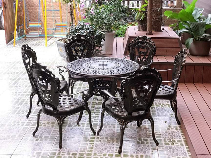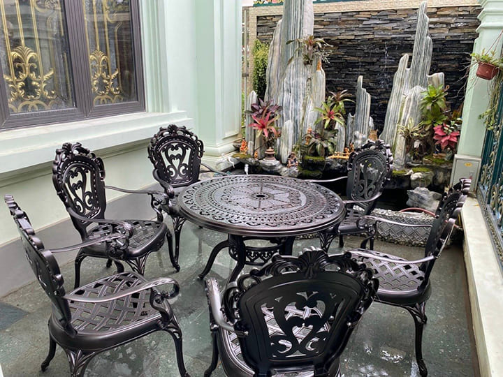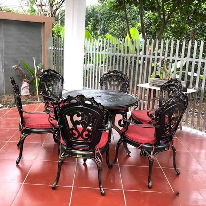 Bộ bàn ghế sân vườn ngoài trời TCĐ-D100 là mẫu mới nhất của năm 2022, với thiết kế kiểu dáng sang trọng lịch sự dành cho những khách hàng có gu thẩm mỹ tinh tế, mang hơi hướng tân cổ điển, giống như thiết kế từ các nước phương tây có phong cách lãng mạng nên bộ bàn ghế sân vườn nhôm đúc này rất phù hợp với những gia chủ có phong cách như vậy.