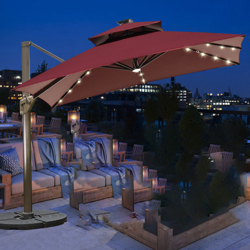 Ô lệch tâm có đèn 3x3m hợp kim có đèn dạng sao đế nhựa đổ nước dùng để trang trí sân vườn bạn có thể xoay và điều chỉnh mọi hướng, nấc xoay 360 độ giúp bạn dễ dàng điều chính theo hướng nắng một cách thoải mãi và mang đến khả năng che nắng hoàn hỏa nhất, bạn có thể điều chỉnh ô nghiêng theo ý muốn mà không cân mất thời gian để dịch chuyển cả chân đế của ô.