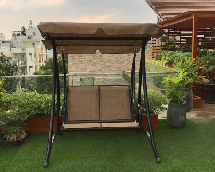 Ghế xích đu ngoài trời được làm từ chất liệu thép hộp kết hợp thêm lớp sơn tĩnh điện cao cấp nên có độ cứng cáp cao và chịu lực tốt, có khả năng chống lại những tác động xấu của môi trường nên rất phù hợp với khí hậu Việt Nam.
